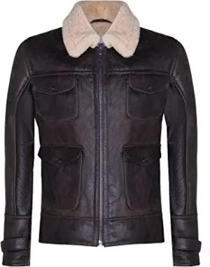 Braune B3 Schaffelljacke Für Herren aus Dem 2. Weltkrieg Shearling Flieger Pilot Fliegend Luftwaffe