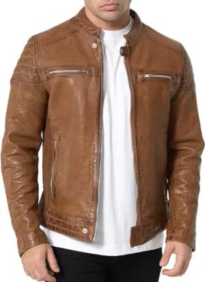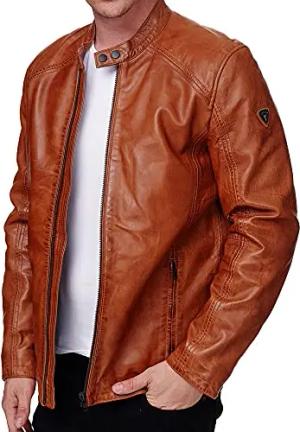 Herren Jacke Lederjacke Echtleder Leder Biker Übergangsjacke 19709 (Cognac, S)