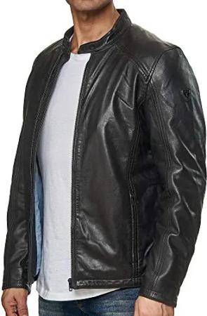 Herren Jacke Lederjacke Echtleder Leder Biker Übergangsjacke 19708 (Schwarz, S)