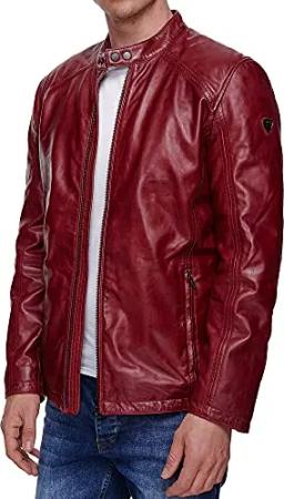 Herren Jacke Lederjacke Echtleder Leder Biker Übergangsjacke 19709 (Weinrot, S)