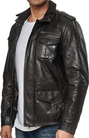 Herren Jacke Lederjacke Echtleder Leder Biker Übergangsjacke 19709 (Braun, S)