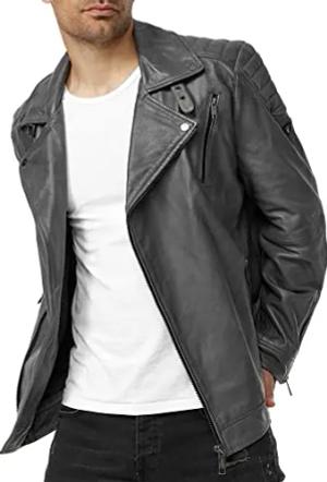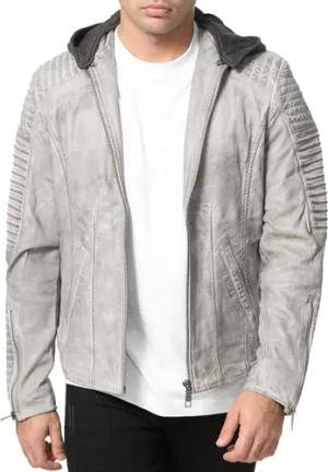 Lederjacke Herren Leder Jacke Biker-Look Echtleder mit abnehmbarer Kapuze A800 (Grau-Crust, XL)