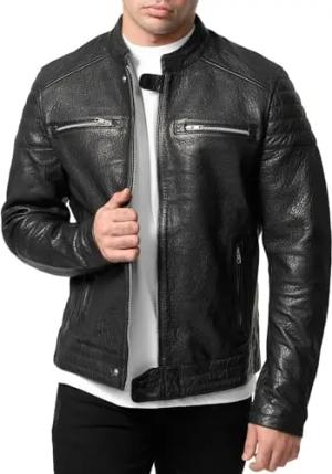 Herren Jacke Lederjacke Echtleder Leder Biker Übergangsjacke 19708 (Schwarz, XXL)