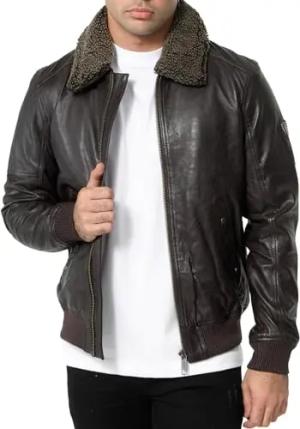 Lederjacke Herren Leder Jacke Echtleder mit abnehmbarem Fell A801 (Braun, 3XL)