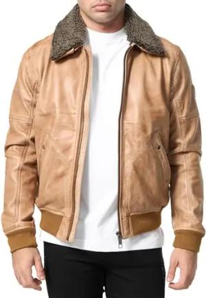 Lederjacke Herren Leder Jacke Echtleder mit abnehmbarem Fell A801 (Camel, XL)