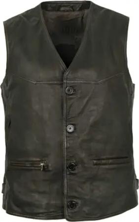 Herren Echtleder Lederweste Lammnappa schwarz-beige antik Größe 54