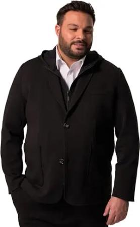 Herren große Größen Übergrößen Menswear L-8XL Jersey-Sakko Bilbao FLEXLASTIC®, Baukasten, abnehmbare Kapuze schwarz XXL 840205100-XXL