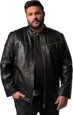 Herren große Größen Übergrößen Menswear L-8XL Leder-Bikerjacke, Leder, Stehkragen, Metallzipper schwarz XL 838258100-XL