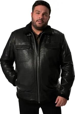 Herren große Größen Übergrößen Menswear L-8XL Lederjacke, Leder, Teddyfutter schwarz 5XL 832249100-5XL