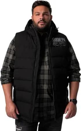 Herren große Größen Übergrößen Menswear L-8XL Steppweste, Kapuze, Brustprint schwarz XXL 835442100-XXL
