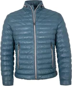 Herren Lederjacke Steppjacke Lammnappa himmelblau Größe 60
