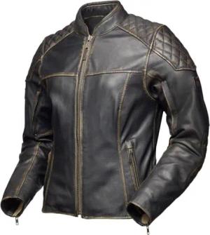 Phinix Damen Motorrad Lederjacke, dunkelbraun, 52