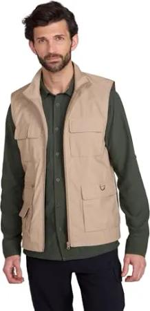 Trek II Herrenweste - Leicht, Körperwärmer, schnelltrocknend, schrumpf- und ausbleichfest, mit vielen Taschen - Zum Überziehen im, Reisen, Frühling Khaki Small