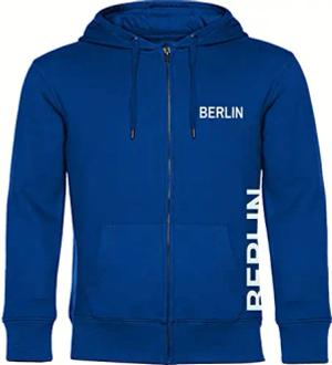 Kapuzen Sweatshirt Jacke - Berlin blau - Brust & Seite - Druck weiß - Sweat Größe XXL blau