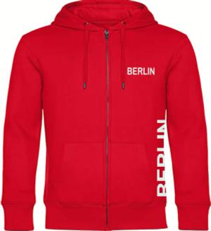 Kapuzen Sweatshirt Jacke - Berlin rot - Brust & Seite - Druck weiß - Sweat