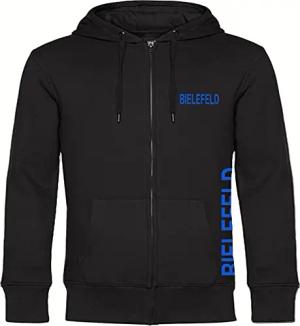 Kapuzen Sweatshirt Jacke - Bielefeld - Brust & Seite - Druck blau - Sweat Größe M schwarz