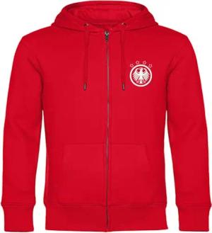Kapuzen Sweatshirt Jacke - Deutschland - Adler Retro - Druck weiß - Sweat Größe L rot