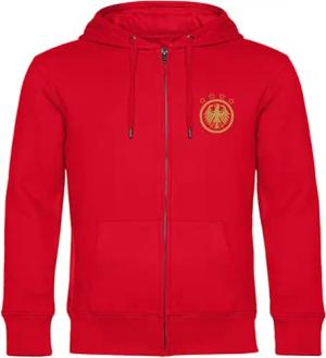 Kapuzen Sweatshirt Jacke - Deutschland - Adler Retro Gold - Druck Gold metallic - Sweat Größe M rot