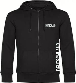 Kapuzen Sweatshirt Jacke - Deutschland - Brust & Seite - Druck weiß - Sweat Größe M schwarz