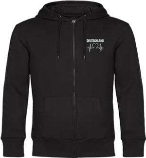 Kapuzen Sweatshirt Jacke - Deutschland - Herzschlag - Druck weiß - Sweat Größe L schwarz