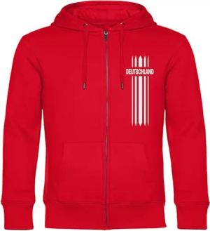 Kapuzen Sweatshirt Jacke - Deutschland - Streifen - Druck weiß - Sweat Größe S rot