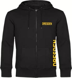 Kapuzen Sweatshirt Jacke - Dresden - Brust & Seite - Druck gelb - Sweat Größe S schwarz