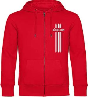 Kapuzen Sweatshirt Jacke - Düsseldorf - Streifen - Druck weiß - Sweat Größe L rot