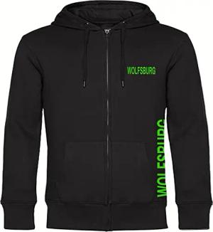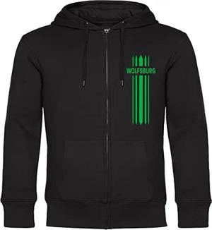 Kapuzen Sweatshirt Jacke - Wolfsburg - Streifen - Druck grün - Sweat Größe M schwarz