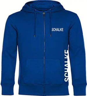 Kapuzen Sweatshirt Jacke - Schalke - Brust & Seite - Druck blau - Sweat Größe S schwarz