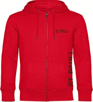 Kapuzen Sweatshirt Jacke - St. Pauli - Brust & Seite - Druck braun - Sweat Größe XL rot