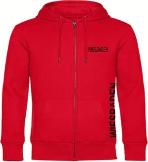 Kapuzen Sweatshirt Jacke - Wiesbaden - Brust & Seite - Druck schwarz - Sweat Größe M rot