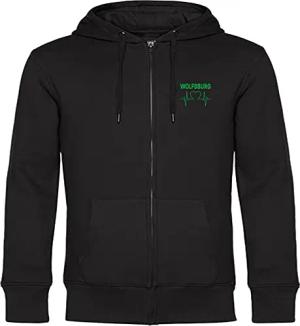 Kapuzen Sweatshirt Jacke - Wolfsburg - Herzschlag - Druck grün - Sweat Größe 3XL schwarz