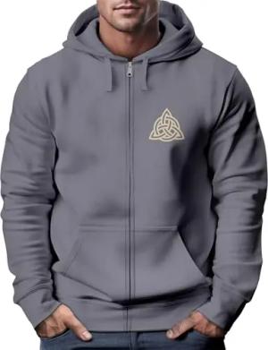 Zip Hoodie Herren Sweatjacke mit Kapuze Logo Wikinger nordische Mythologie Valknut Wotansknoten Valhalla schwarz XS