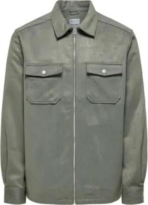 ONLY&SONS Herren Hemdjacke Reißverschluss Brusttaschen Regular Fit Langarm, Farben:Grün-2, Größe Hemd:S
