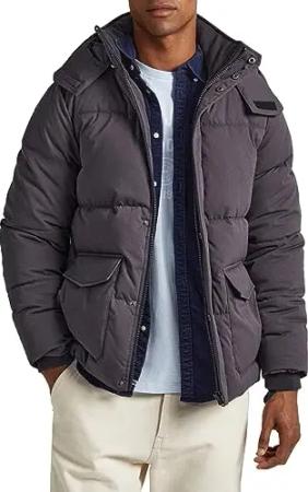 Herren Biel Puffer Jacke, Schwarz (Washed Black), XL