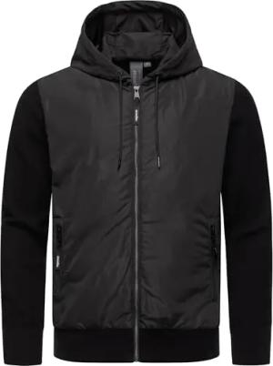 Herren leichte Übergangsjacke kurze Frühlingsjacke mit verstellbarer Kapuze und weichen Strickärmeln Ronel YOUMODO Black Gr. L