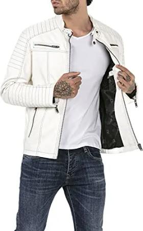 Bikerjacke für Herren Kunstleder-Jacke Übergangsjacke Reißverschluss Weiß L
