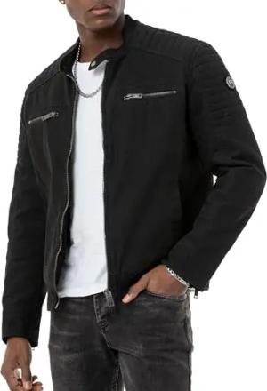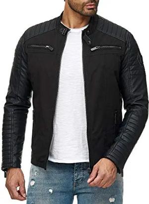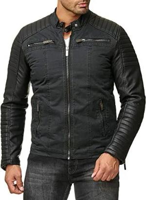 Herren Jacke Übergangsjacke Biker Lederjacke Echtleder Kunstleder Baumwolle mit gesteppten Bereichen, S, Schwarz - Kunstleder