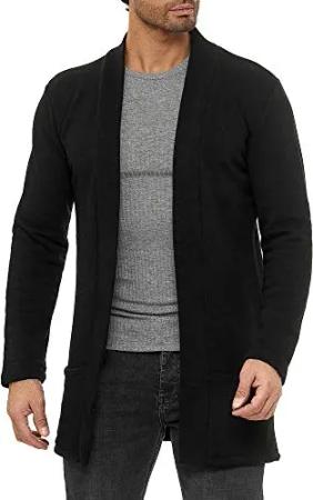 Mantel Herren Cardigan Lange Strick-Jacke Schwarz S