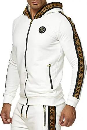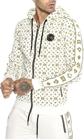 Herren Sweatjacke Kapuzenpullover Reißverschluss R-Logo Weiß XL
