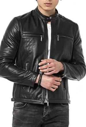 Echt Lederjacke Herren Bikerjacke Übergangsjacke Schwarz L