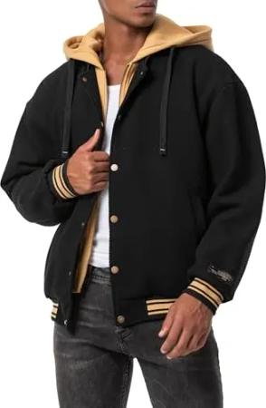 Herren College-Jacke mit Kapuze doppelten Verschluss Schwarz XXL