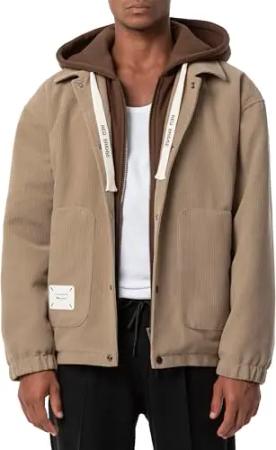 Herren Jacke Cord mit Kapuze doppelten Verschluss Camel S