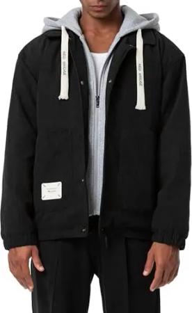 Herren Jacke Cord mit Kapuze doppelten Verschluss Schwarz XXL