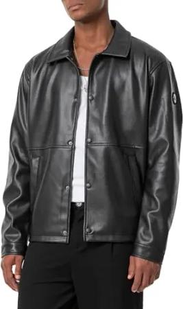 Herren Jacke Kunst-Lederjacke Übergangsjacke Schwarz XL