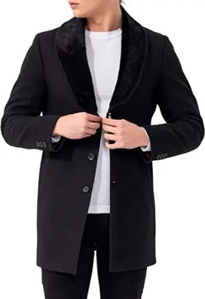 Eleganter Herren Kurzmantel mit Kentkragen – Klassischer Look, verdeckte Knopfleiste Schwarz XXL