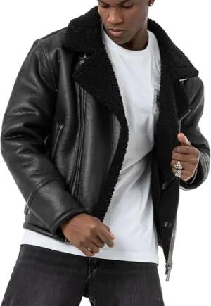 Herren Kunst-Lederjacke Balboa Fliegerjacke Piloten Jacke Fellkragen Schwarz 3XL