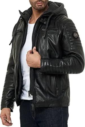Herren Lederjacke Echt-Leder Bikerjacke mit Sweat- Kapuze Two in One Schwarz S