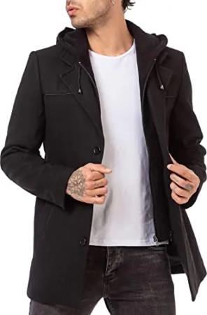 Herren Mantel Trenchcoat Kapuzenjacke Elegant lange Jacke Hooded Schwarz XXL