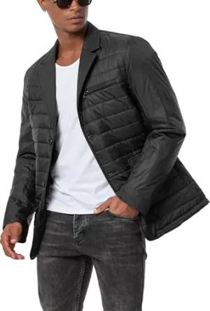 Herren Steppjacke Eleganter Blazer-Stil mit Daunenoptik Leichte Übergangsjacke Schwarz M